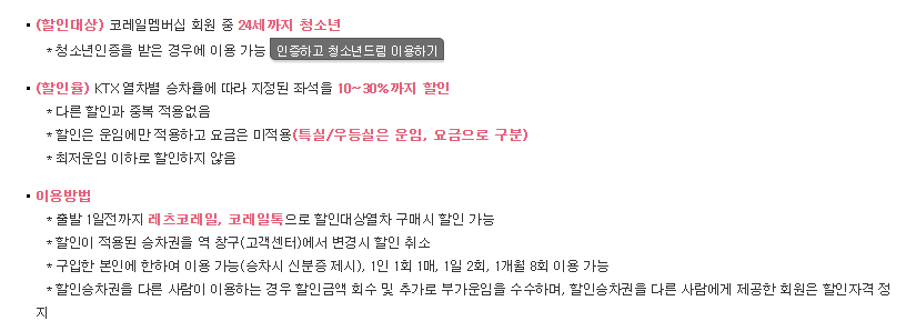 기차표 할인 혜택